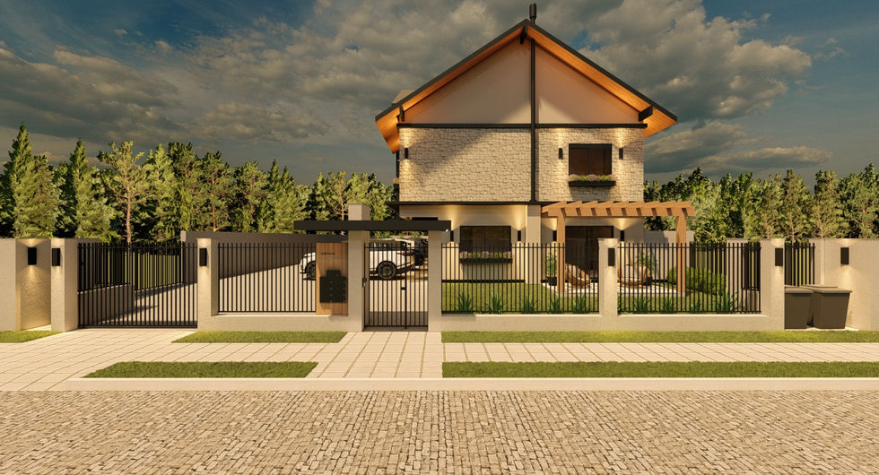 Conta com arquitetura moderna e de fino requinte, com materiais de primeira linha sendo piso em porcelanato no pavimento inferior e laminado no pavimento superior.