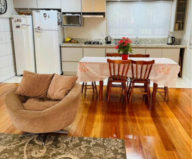 A casa encontra-se parcialmente mobilhada com planejados na cozinha, banheiros e quarto social. O quintal gramado, florido e arborizado é totalmente cercado.
